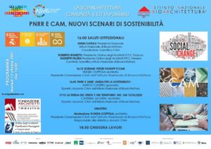 12/10/2021 @ 16:00-18:30 – PNRR E CAM, NUOVI SCENARI DI SOSTENIBILITÀ Webinar, MARTEDÌ 12 ottobre 2021 ore 16 In coorganizzazione con la Fondazione Architetti nel Mediterraneo di Messina e l’Ordine degli Architetti P.P.C. di Messina l’Ordine degli Architetti P.P.C. di Padova Presentazione Il percorso formativo e di certificazione intrapreso dall’Istituto Nazionale di Bioarchitettura negli ultimi due anni, da accesso […]